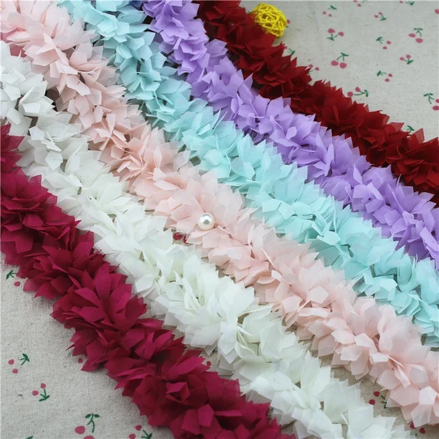 Many Color Chiffon Grass Trim for Making Bows,Chiffon Flower and Rosette Trim for Wedding